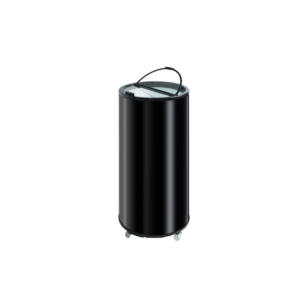 Stilfuld tøndekøler i enkelt design. Sort udenpå, hvid indvendig. Dit design, svøbt omkring køleren. Mulighed for svøb i eget design. Højde på 96 cm og omkreds på Ø44,5 cm og kan køle fra 2-10 grader. Energiklasse B. Bemærk: 1 års reklamationsret. Prisen er ekskl. Print.