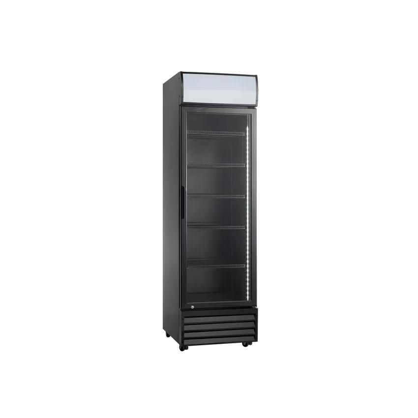 SD 417 er en stilfuld displaykøler på 317 liter. 5 Justerbare trådhyler, 2 vertikale LED lys i front samt lystop med LED, ventileret køling samt 4 kraftige hjul. Prisen er ekskl. Svøb