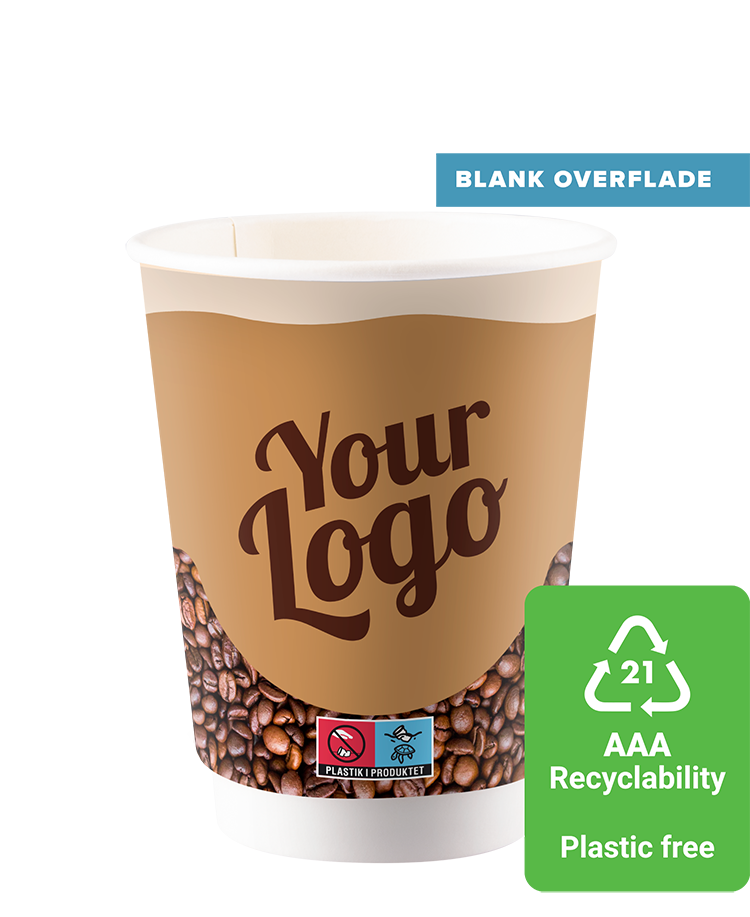 Bionedbrydelige papkrus med bio-mærke påtrykt, som tydeliggøre dette for dine kunder. Papkrus med blank overflade med mulighed for dit logo på hele kruset. Trykket er fuldkommende duft- og smagsfrit. Godkendt til både varme og kolde drikke. Grundet lovkrav, mærkes "Plastik i produktet" logo på koppen (SUPD), uanset plastindhold