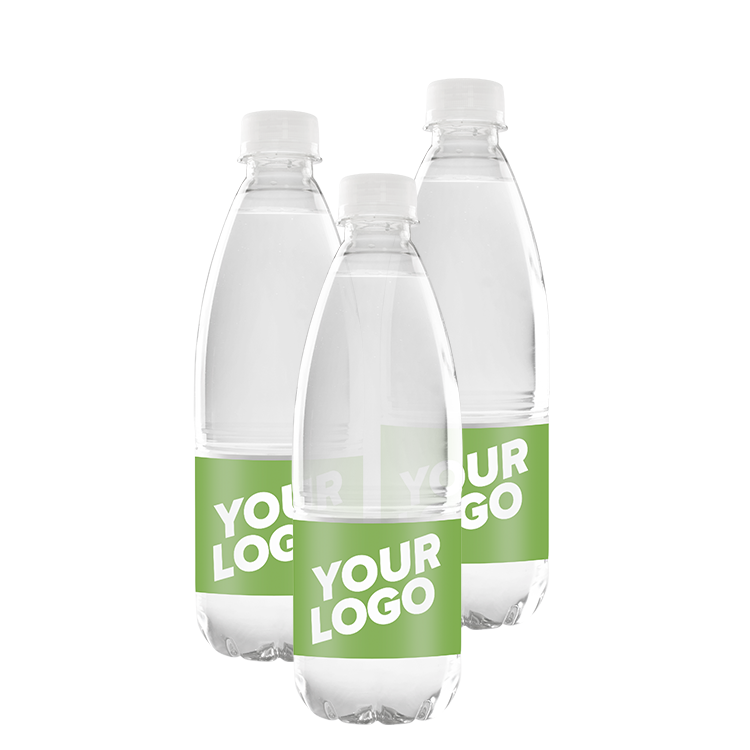 Logovand i flot 0.50 flasker, fås med både sort og klar låg. Flasken er produceret af 50% genanvendt plast. Etiketten måler 196x48 mm. Pakkes med 12 stk. pr Kolli